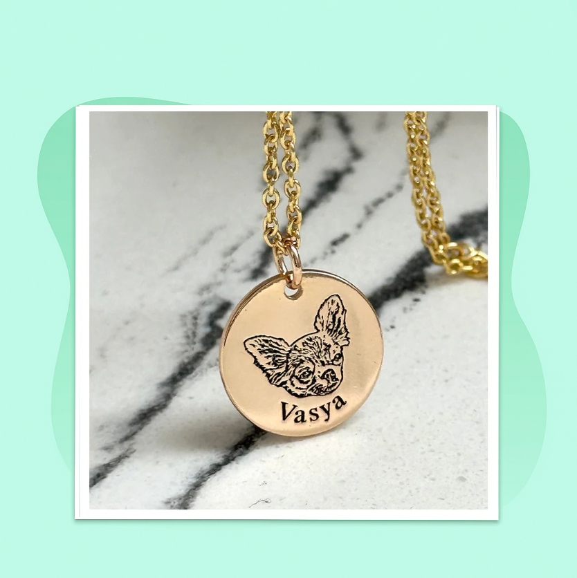 We meticulously etch your illustration onto your very own personalized necklace !